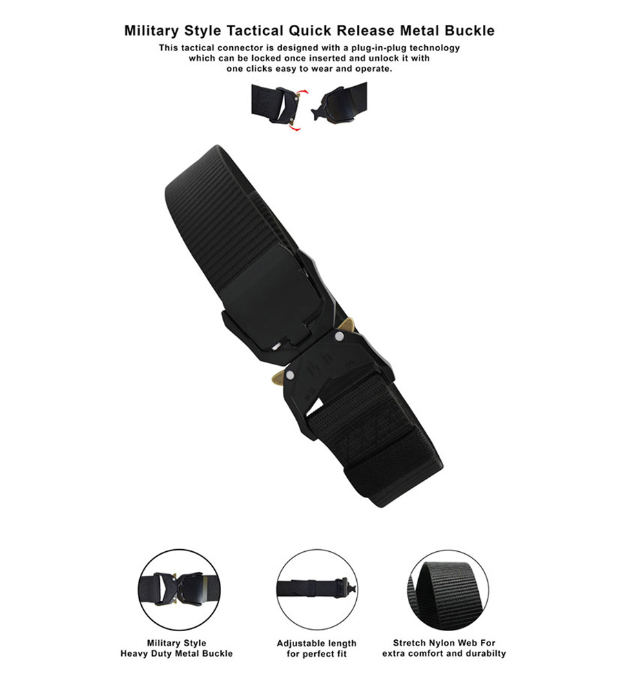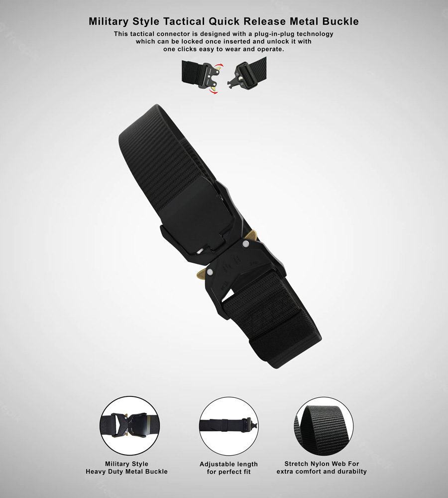 D555 Dale Tactical Stretch Webbing Belt with Heavy Duty Quick Release Buckle Black