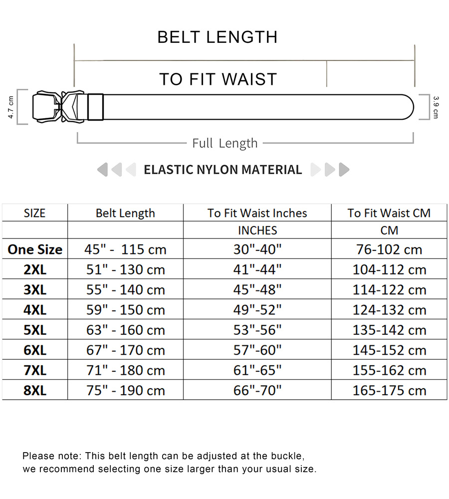 Suuruse juhend - D555 Dale Tactical Stretch Webbing Belt with Heavy Duty Quick Release Buckle Black