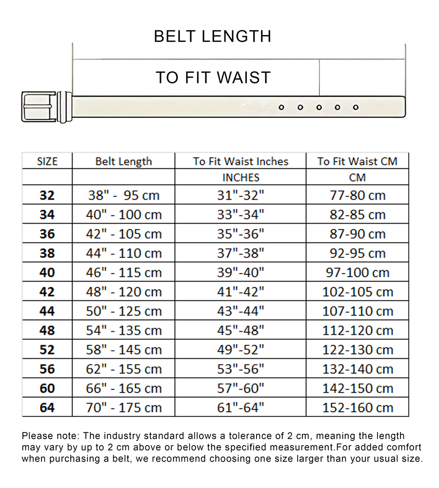 Suuruse juhend - D555 Dylan Tan Bonded Leather Belt