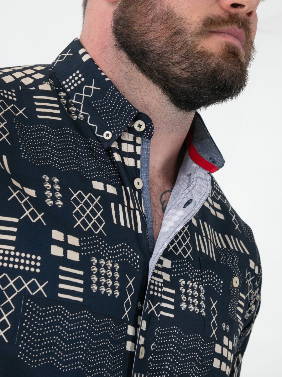 Suuruse juhend - D555 Rick Geometric Print Short Sleeve Shirt Navy