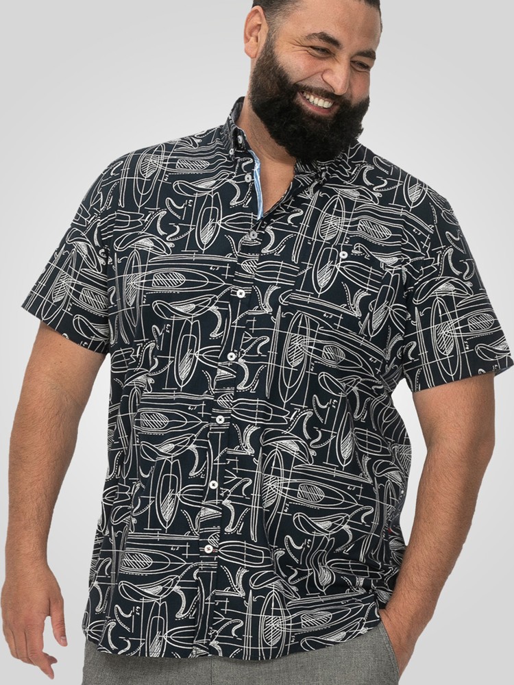 Suuruse juhend - D555 Worthing Surf AOP Short Sleeve Button Down Collar Shirt Navy