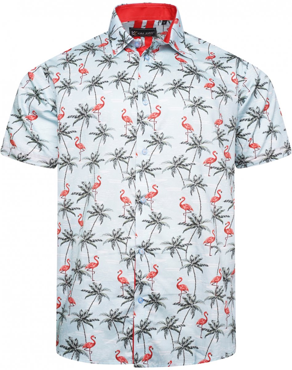 Suuruse juhend - Kam Jeans 6067 Flamingo and Palm Tree Short Sleeve Shirt Blue
