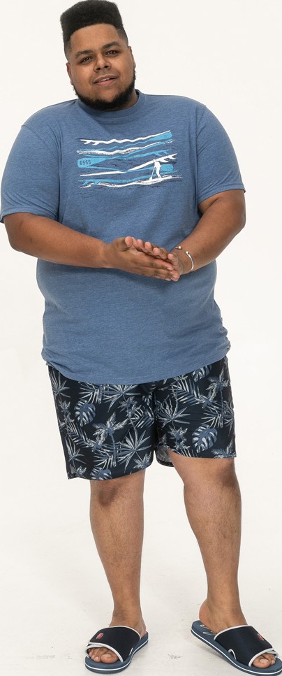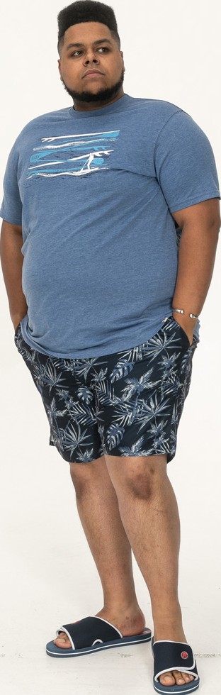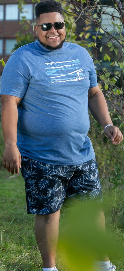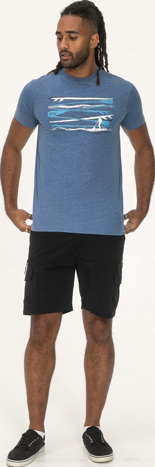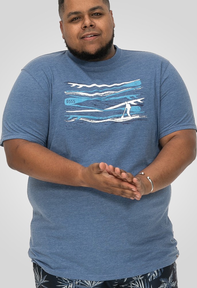 Suuruse juhend - D555 Cardiff Surfer And Waves Printed Crew Neck T-shirt Denim Marl