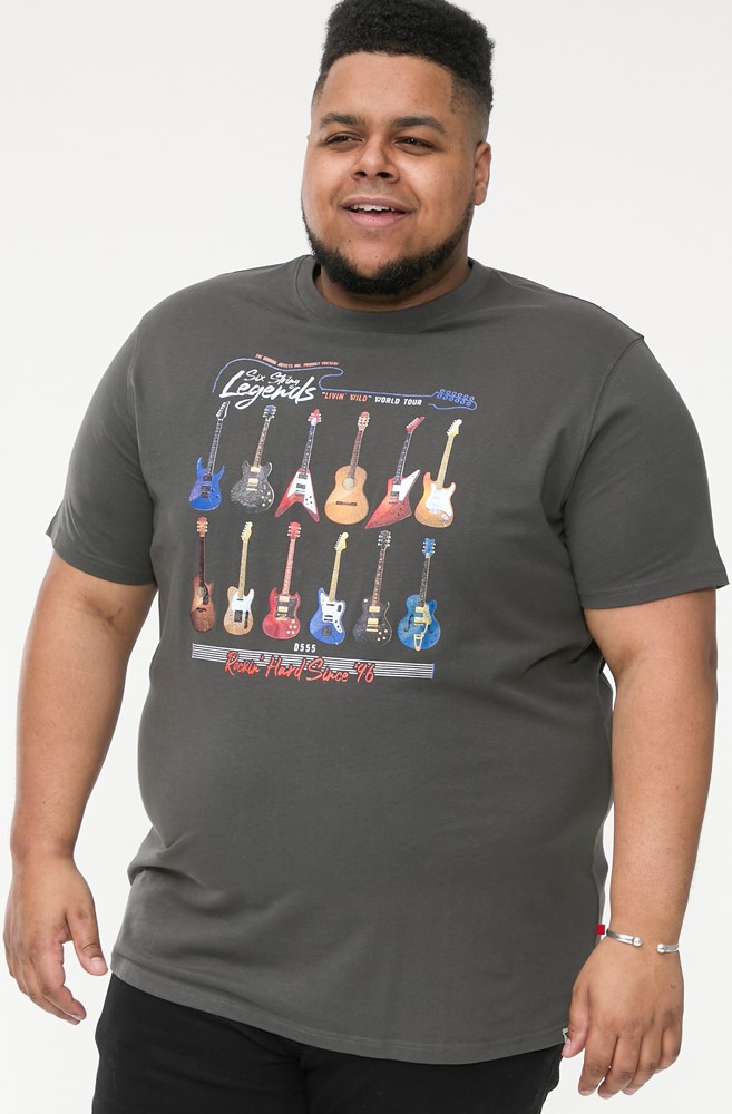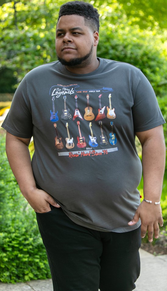Suuruse juhend - D555 JAIDEN Legends Guitar Printed Crew Neck T-Shirt Khaki