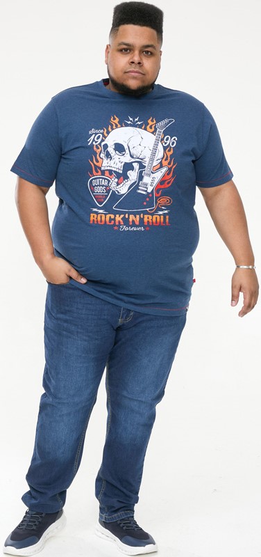 Suuruse juhend - D555 NEAL Skull With Flames Printed Crew Neck T-Shirt Navy/Blue Twist
