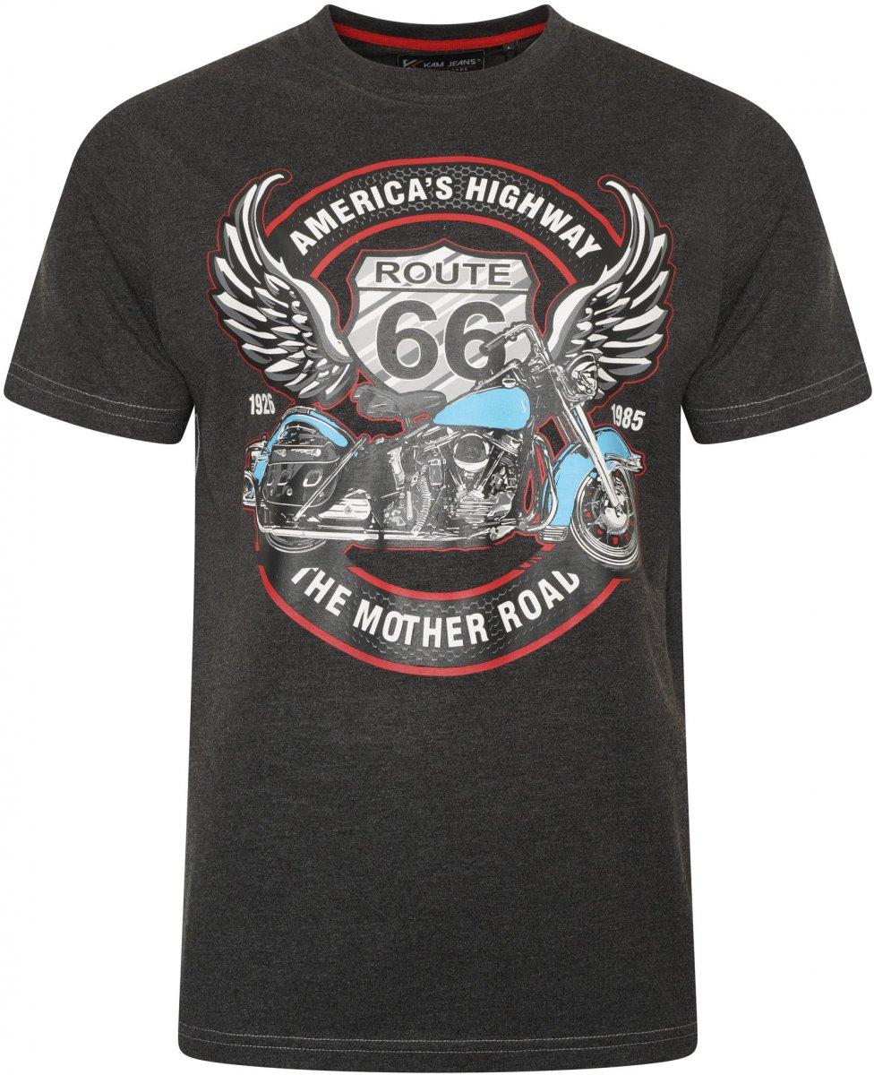 Suuruse juhend - Kam Jeans 5755 Route 66 Motorbike Print T-Shirt Charcoal Marl