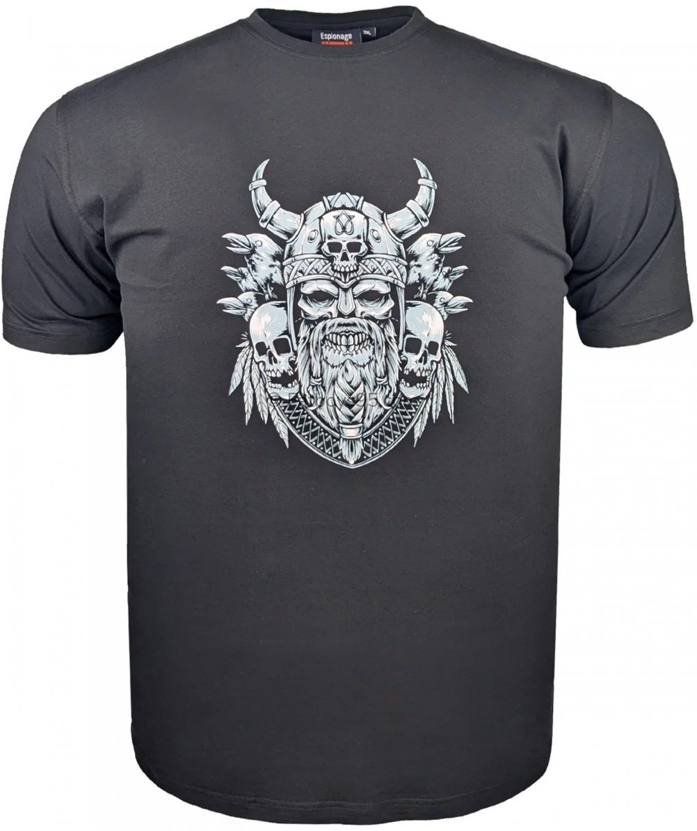 Suuruse juhend - Espionage T441 Viking Skull Print T-Shirt Black
